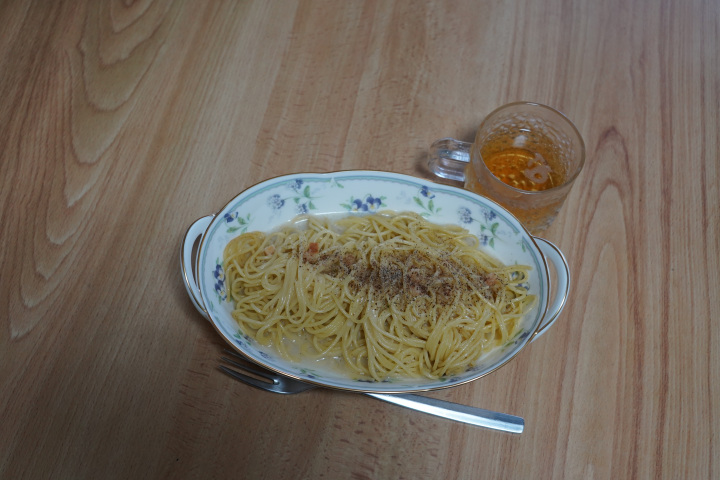 友人から近況の電話があり、20分以上話題が尽きませんでした。お互いに歳を取り体のあちこちに不具合が出てきました。補聴器のブル-ツースが有効に機能してくれました。朝飯は定番。昼は仕舞い込んでいた引き出物のお皿を使用してスパゲティ。これからは仕舞い込んでいたものを有効活用しようと思います。
