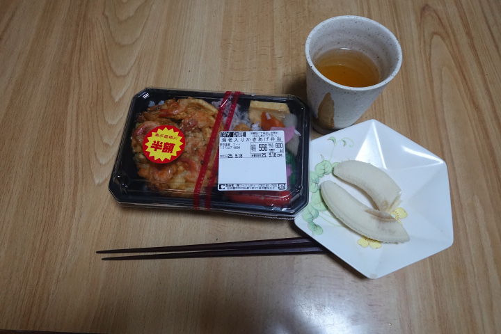 補聴器の調整と診察に行き病院の売店で半額になった弁当を買ってきました。その後で恒例の飲み会に行ってきました。病院の時間が伸びたため飲み会の開始には間に合いませんでしたが食べ物は少し残しておいてくれました。